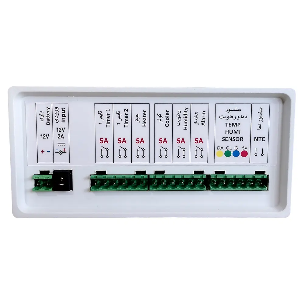 | خروجیها | کولر، هیتر، رطوبت، هشدار، 2 عدد تایمر |