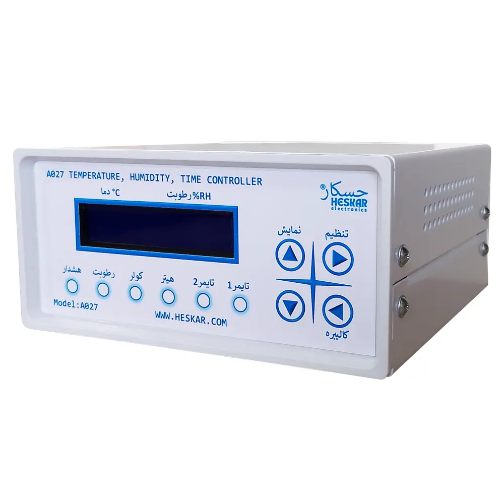 دستگاه کنترلر دما و رطوبت و تایمر صنعتی مدل A027 از برند حسکار یک دستگاه حرفهای و چندمنظوره برای کنترل دقیق دما، رطوبت و زمانبندی تجهیزات صنعتی یا موتورهای چپگرد راستگرد است و میتوان از آن در گلخانه ها، سالنهای پرورش دام و طیور، سالن پرورش قارچ و هر محیطی که به کنترل همزمان دما، رطوبت و تایمر نیاز دارد استفاده کرد.