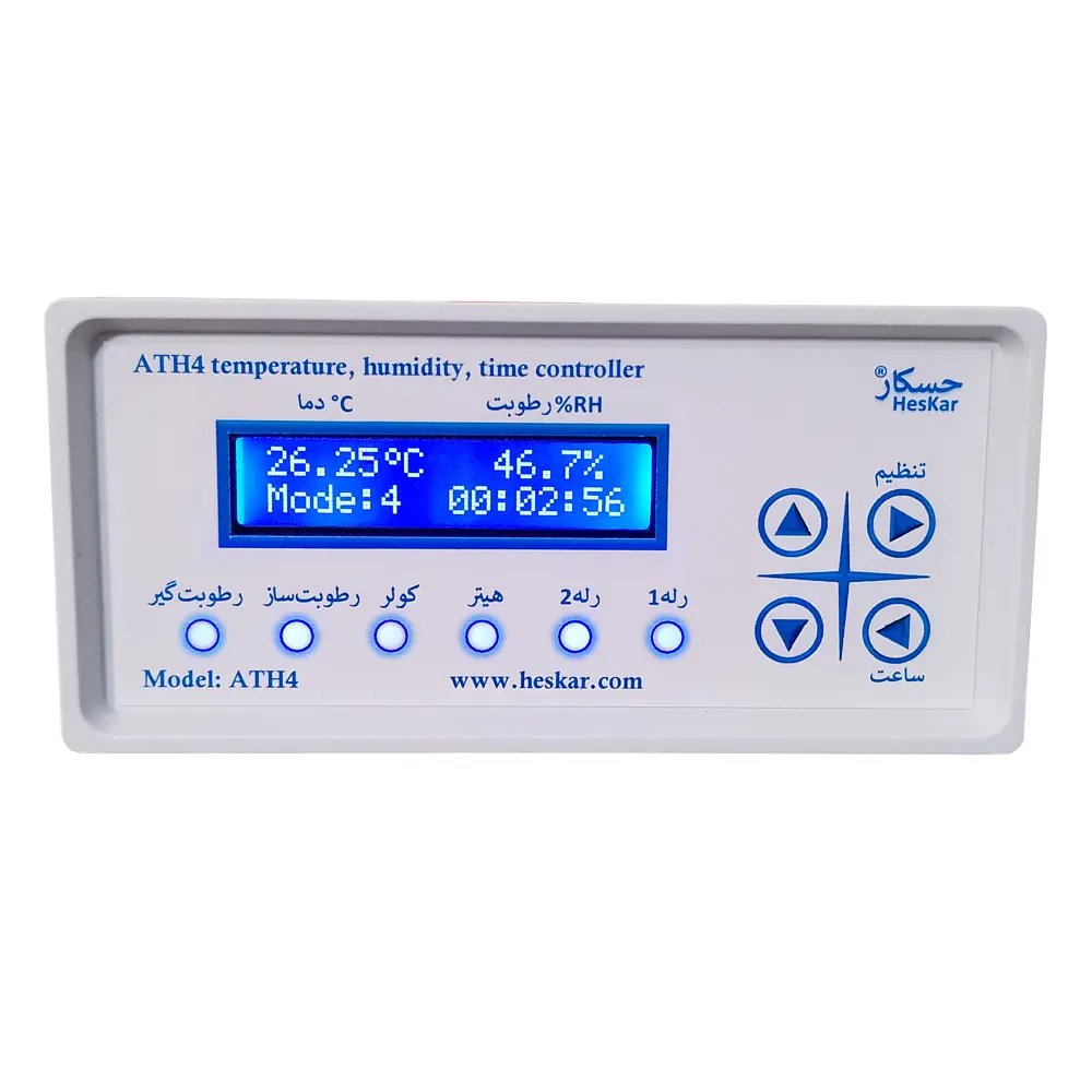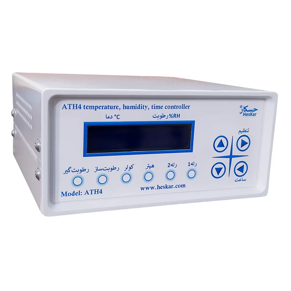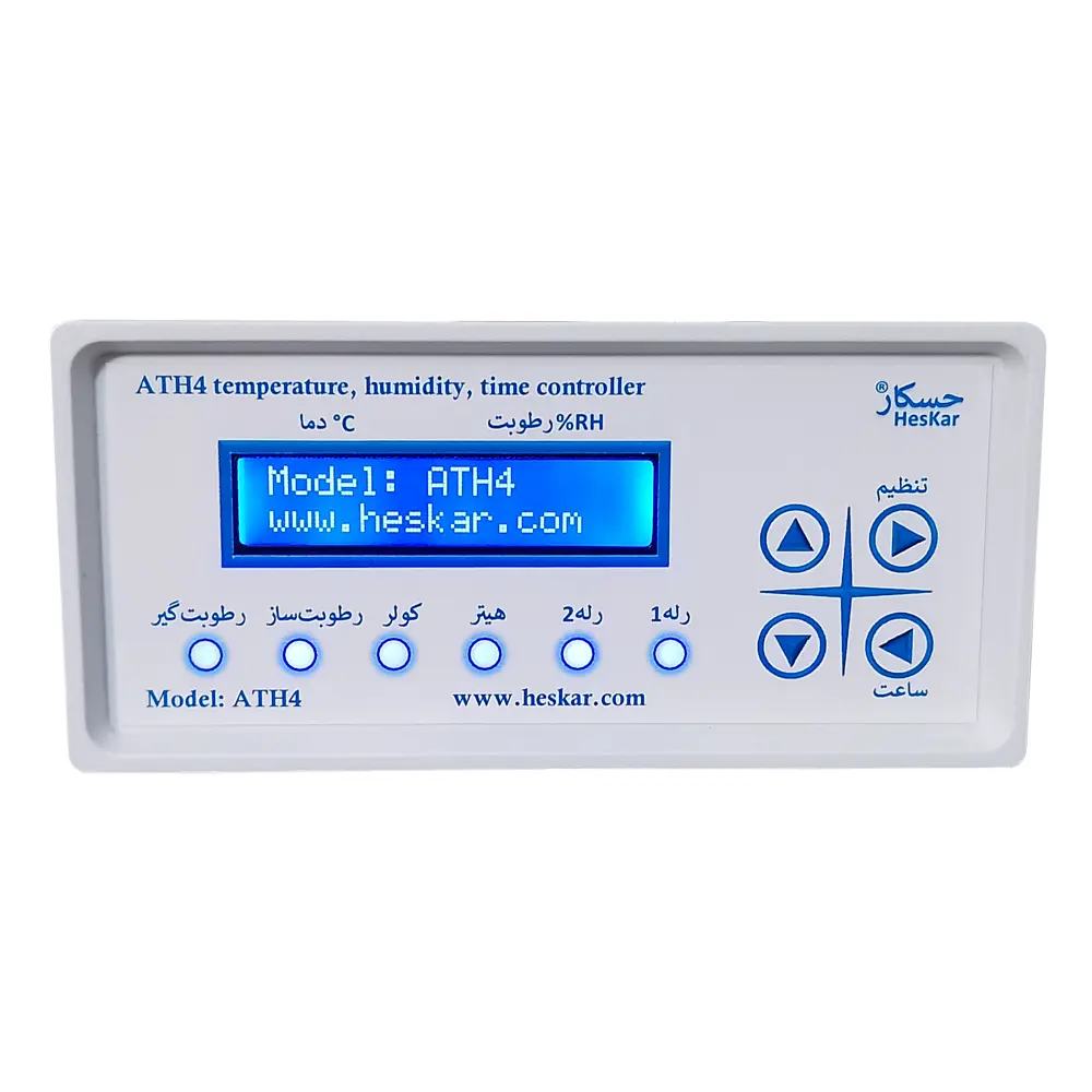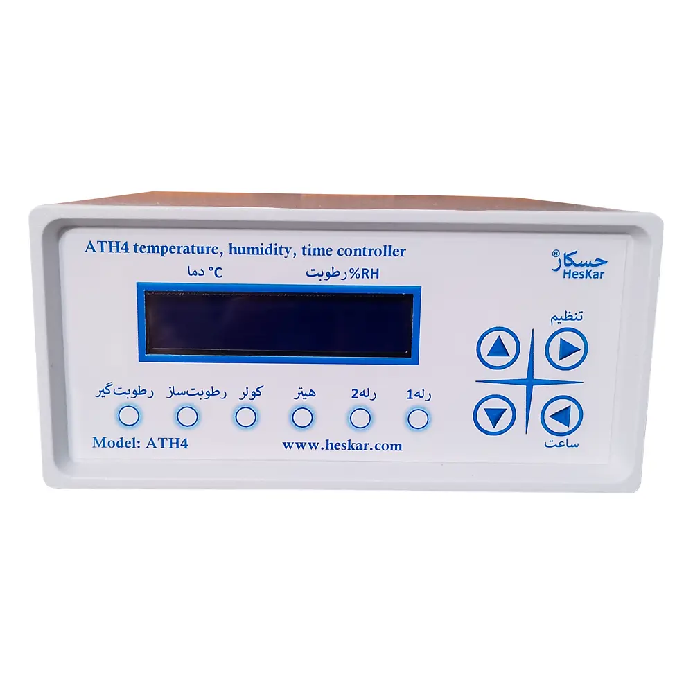 دستگاه کنترل دما و رطوبت مدل ATH4 از برند حسکار یک ابزار پیشرفته برای مدیریت دقیق شرایط محیطی در گلخانه ها، سالنهای پرورش طیور، اتاقهای کشت و سایر محیطهای حساس است. این دستگاه دارای 6 خروجی مستقل شامل هیتر، کولر، رطوبتساز، رطوبتگیر و دو خروجی عمومی (برای روشنایی یا تجهیزات جانبی دیگر) بوده و امکان کنترل کامل شرایط محیطی را فراهم میکند.