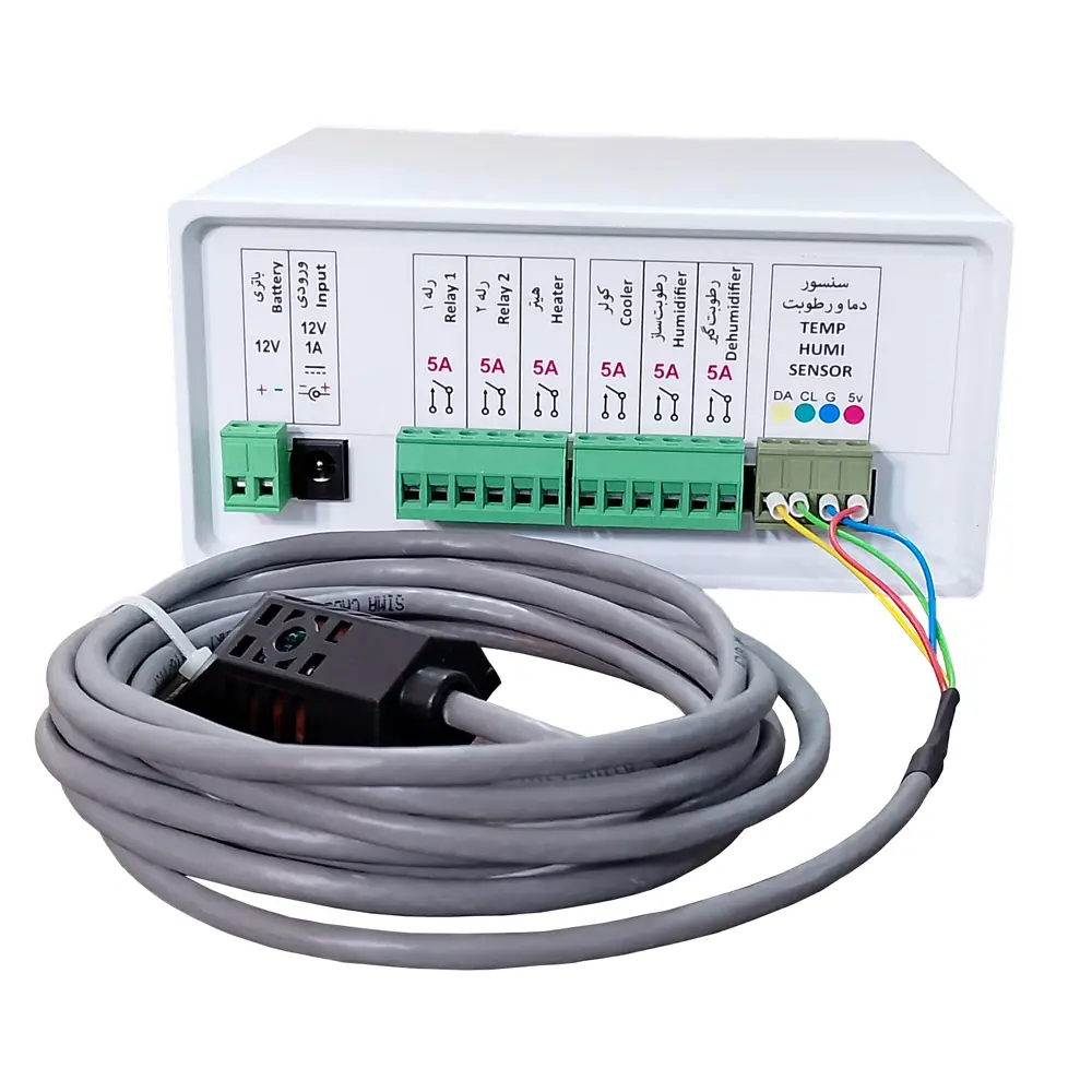 | خروجیها | هیتر، کولر، رطوبت ساز، رطوبت گیر، دو عدد عمومی |